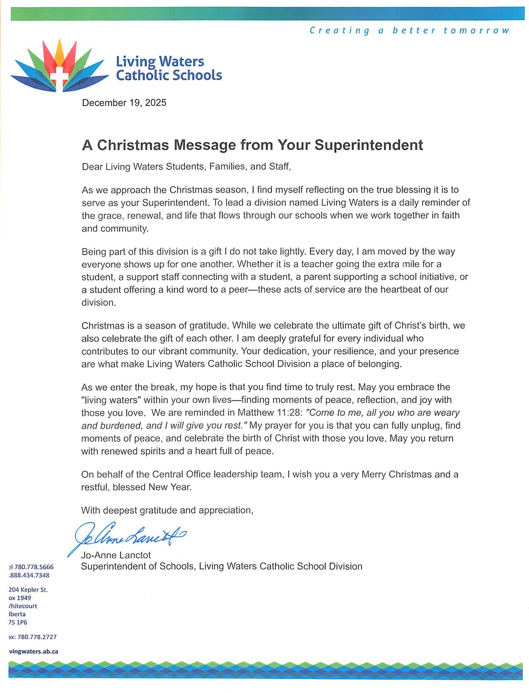 Superintendent Christmas Message 2025